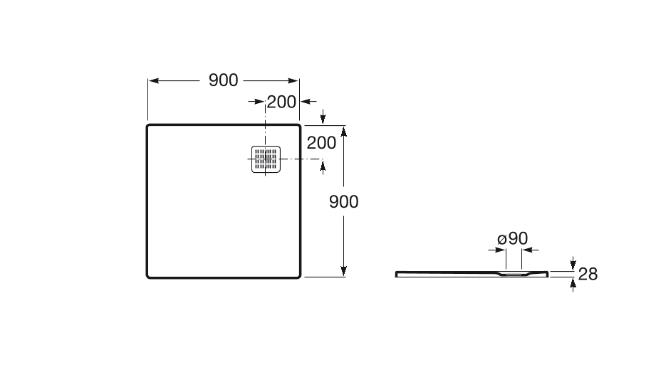 1) Душевой поддон Roca Terran 90х90 см искусственный камень цемент