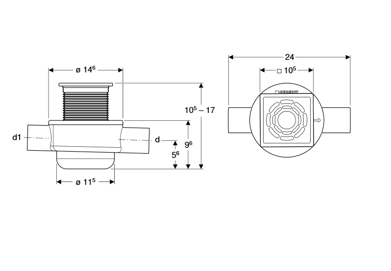 Душевой трап Geberit Aquorea решетка с отверстиями 10х10 см
