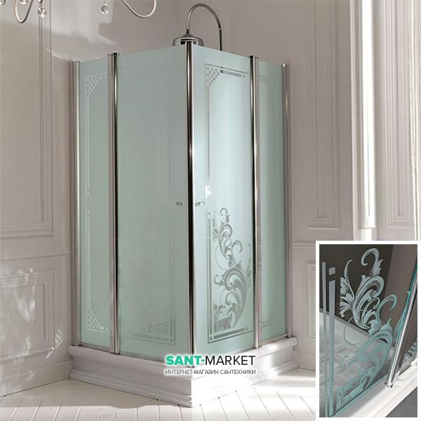 Душевой уголок Kerasan Retro DX/SX 100х100 см профиль хром прозрачное стекло с декором