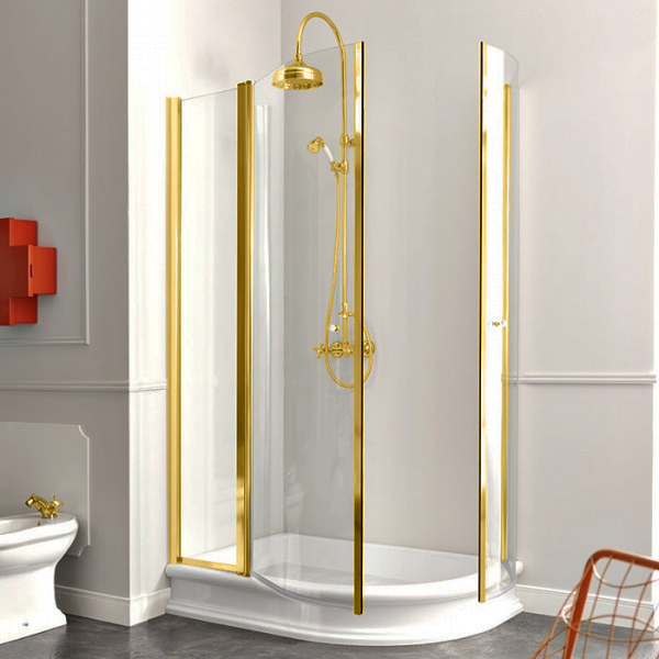 Душевой уголок Kerasan Retro DX асимметричный 80х120 см профиль золото прозрачное стекло