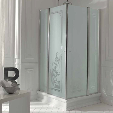 Душевой уголок Kerasan Retro DX/SX 100х100 см профиль бронза матовое стекло с декором 9148P3