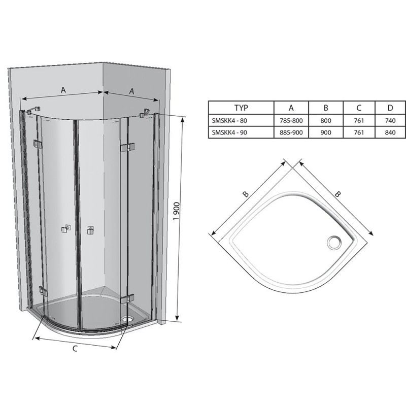 Душевой уголок полукруглый, четырехэлементный SMSKK4