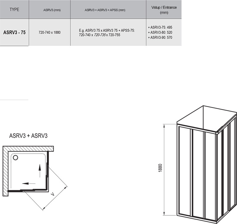 Изделие поставляется в собранном виде, необходимо лишь прикрепить его к стене и уплотнить. С помощью комбинации разных размеров изделия SRV2-S можно получить квадратный или прямоугольный варианты душевого пространства. Коллекция предоставляет самый широкий вход из всех прямоугольных душевых уголков Supernova. С помощью комбинации разных размеров изделия ASRV3 можно получить квадратный или прямоугольный варианты душевого пространства.