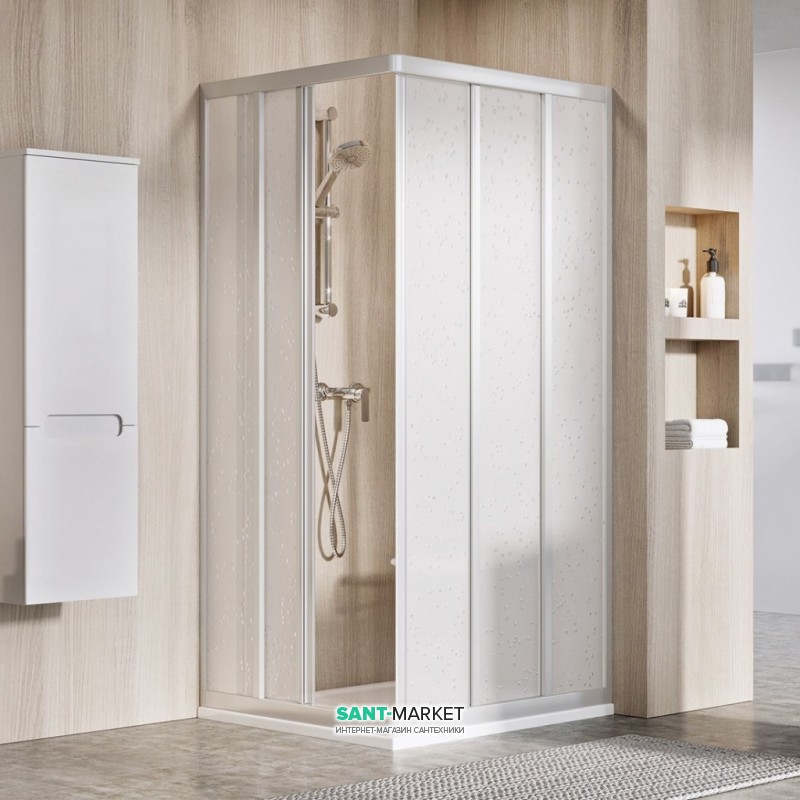 1) Душевой уголок прямоугольный раздвижной Ravak ASRV3 + ASRV3-80 шестиэлементный с угловым входом профиль сатин/полистирол pearl