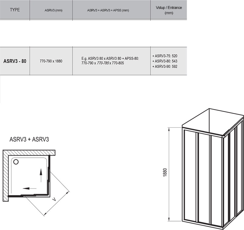 Изделие поставляется в собранном виде, необходимо лишь прикрепить его к стене и уплотнить. С помощью комбинации разных размеров изделия SRV2-S можно получить квадратный или прямоугольный варианты душевого пространства. Коллекция предоставляет самый широкий вход из всех прямоугольных душевых уголков Supernova. С помощью комбинации разных размеров изделия ASRV3 можно получить квадратный или прямоугольный варианты душевого пространства.