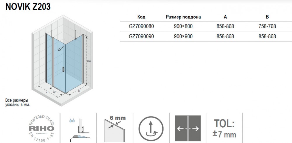 Душевой уголок Riho Novik Z203 90x90 см хром/прозрачное стекло GZ7090090
