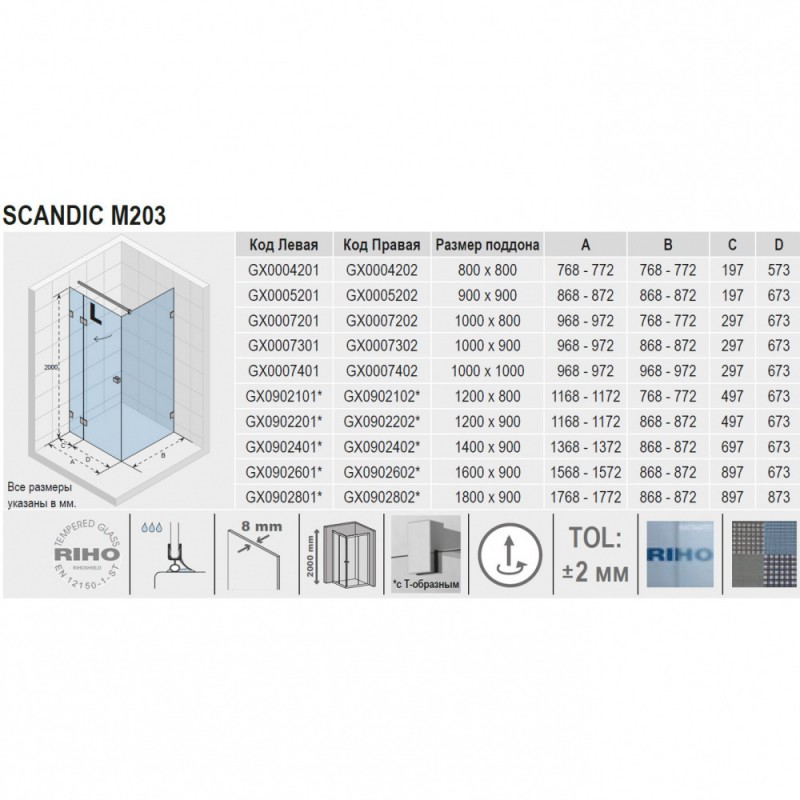 Душевой уголок Riho Scandic M203 120x100 см левый хром/прозрачное стекло GX0902301