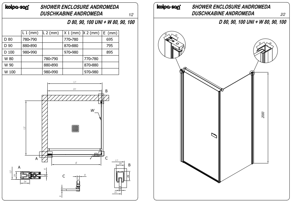 Душевые двери Kolpa San Andromeda D 80-UNI SBR 80х200 см профиль серебро/прозрачное стекло Clean Coat