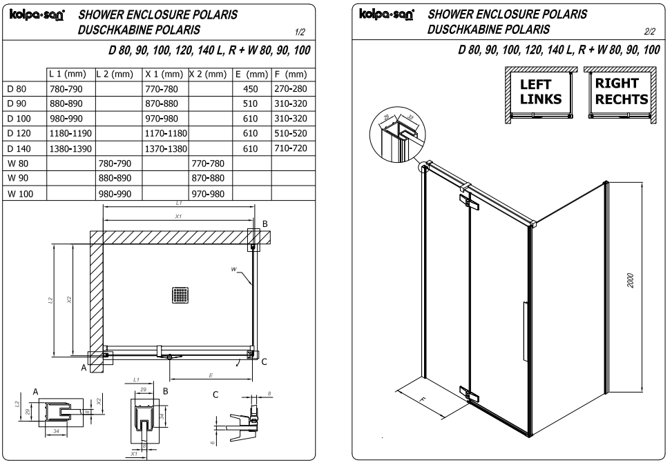 Душевые двери Kolpa San Polaris D 90-L SBR 90х200 см левая профиль серебро/прозрачное стекло Clean Coat 515430