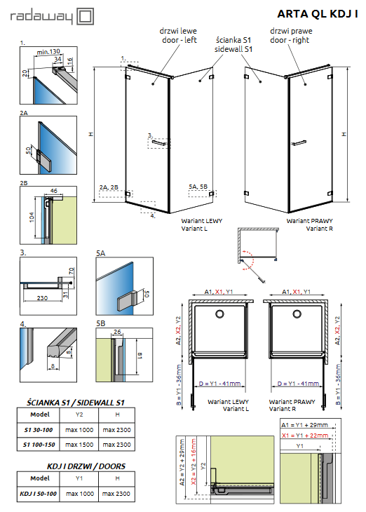 Отличительной чертой этой серии является петля, установленная на стене без уплотнительного профиля, в отличие от серии Arta. Так как у изделий Arta QL нет регулировки, требуется детальный замер. Все модели изготовливаются исключительно «под заказ». Для замера рекомендуется вызвать сертифицированного монтажника Radaway.