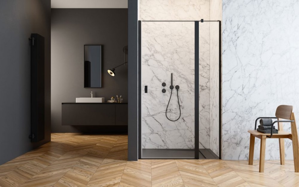 Nes Black — это кабины, двери и шторки на ванну — с фурнитурой в цвете «Black». Дополнительно несколько моделей Nes Black доступно со стеклом Frame/Factory на котором черные полоски изготовлены из устойчивой, керамичной краски.