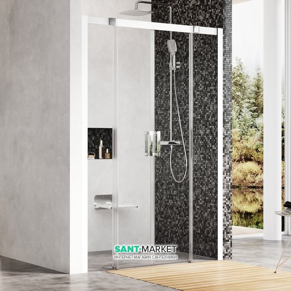 1) Душевые двери Ravak Matrix MSD4 160 раздвижные четырехэлементные профиль белый/стекло прозрачное