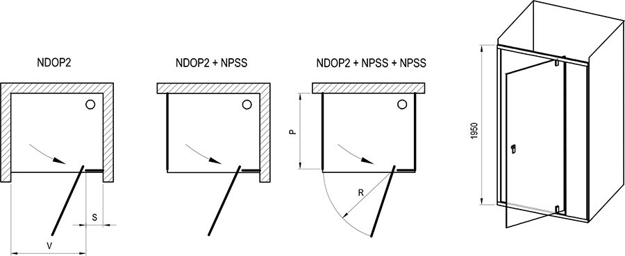 Комбинация с двумя неподвижными стенками типа NPSS позволяет создать "П" - образную душевую кабину. Регулировочный профиль NNPS позволяет расширить изделие на 20 мм, что дает возможность душевым дверям идеально адаптироваться к строительным неровностям до 4 см с каждой стороны.