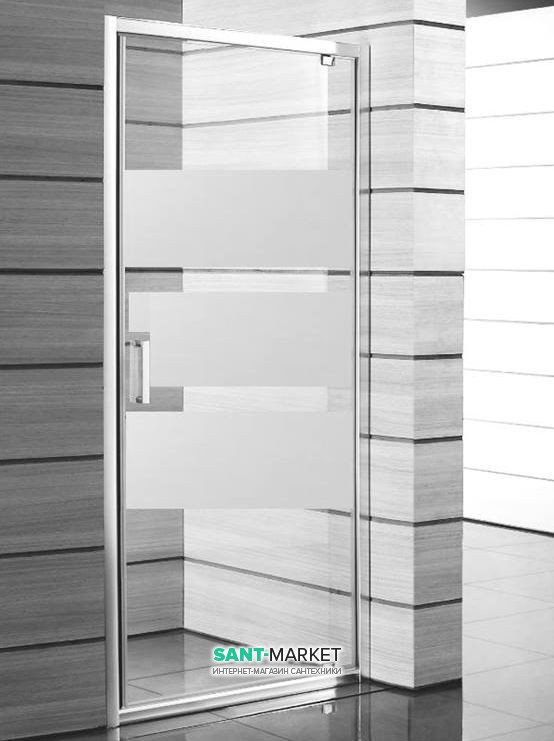 1) Дверь душевая Jika Lyra Plus 90 см белый профиль полосатое стекло