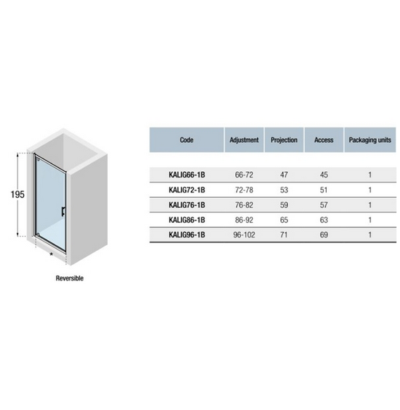 1) Дверь душевая Novellini Kali G 76-82x195h профиль серебро прозрачное стекло
