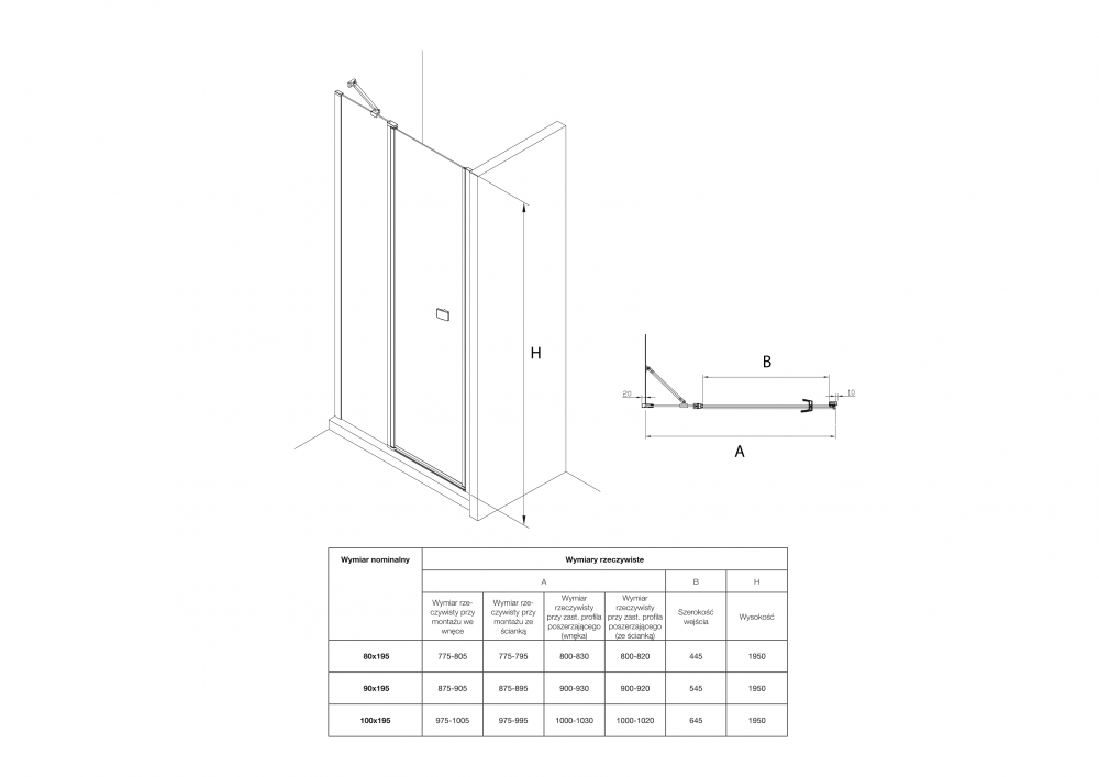 1) Дверь душевая одностворчатая с неподвижной частью Roca Capital 100х195 профиль алюминий хром прозрачное стекло