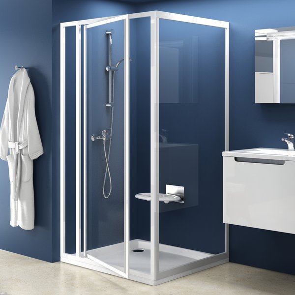 Устанавливается в облицованный кафелем угол ванной комнаты на поддоны RAVAK Aneta, Angela, Perseus, Perseus Pro, Perseus Pro Flat, Perseus Pro Chrome, Gigant Pro, Gigant Pro Flat, Gigant Pro Chrome или непосредственно на пол со встроенным душевым каналом или трапом.