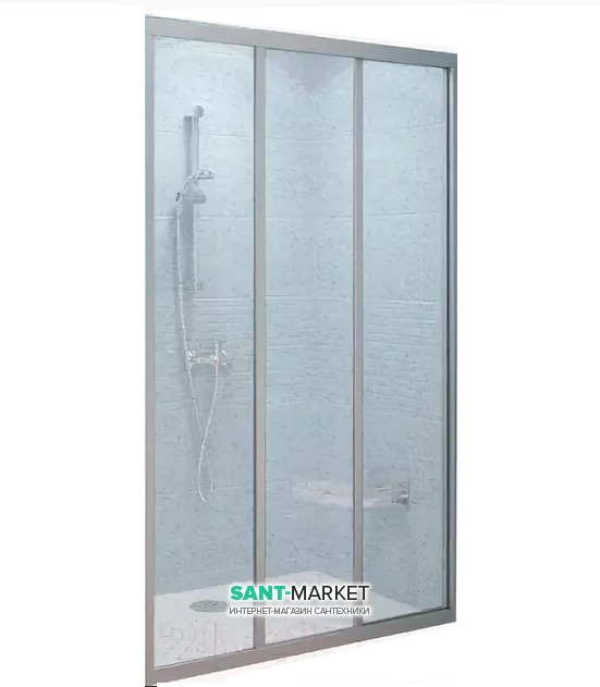 - душевые двери состоят из одной неподвижной части и двух подвижных частей