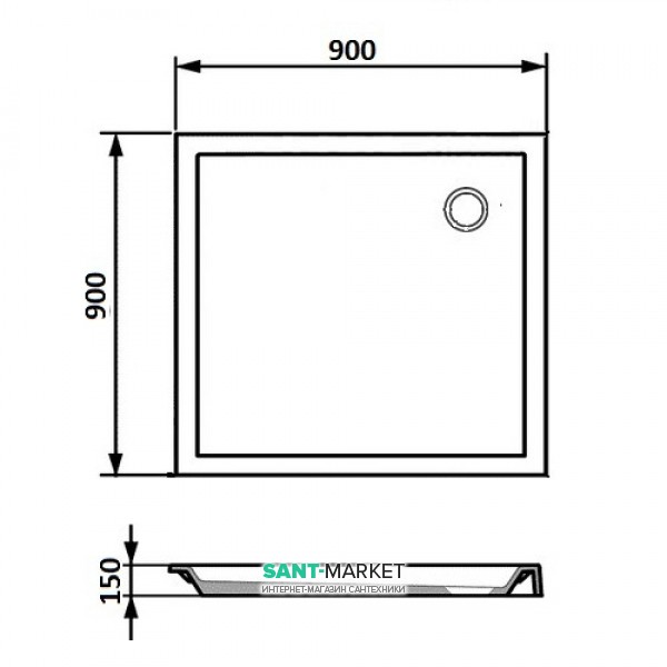 Душевой поддон акриловый квадратный Eger Frida 90х90х15 белый 599-151/2