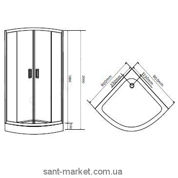 Душевой поддон акриловый четверть круга Eger Tisza 90х90х15 белый 599-021/2