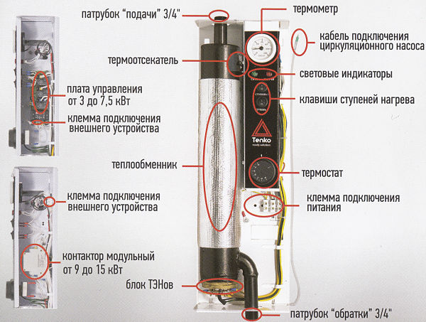 Серия котлов «Эконом» оснащена двухступенчатой системой защиты, которая предохраняет устройство от перегрева, итальянским капиллярным термостатом IMIT, плавно регулирующим температуру теплоносителя системы в диапазоне 0 – 90°С, аналоговым термометром, световыми индикаторами для визуального контроля работы, а также выводом для подключения циркуляционного насоса. Модельный ряд состоит из котлов мощностью от 3 до 15 кВт, имеющими три ступени нагрева. Подключение оборудования осуществляется в однофазные или трехфазные сети напряжением 220 В или 380 В соответственно. К преимуществам электрических котлов торговой марки Tenko относятся: высокий коэффициент полезного действия (КПД), простота технического обслуживания, экологическая чистота, надежность, удобство монтажа, эксплуатации и транспортировки. В сочетании с невысокой ценой и низкими эксплуатационными расходами электрокотлы серии «Эконом» стали идеальным вариантом по соотношению качества, функциональных возможностей и стоимости.