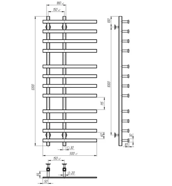 В корпус полотенцесушителя вмонтирован электрический нагревательный элемент. Для удобства эксплуатации на стойке полотенцесушителя установлен термоконтроллер.