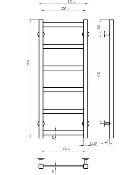 Электрический полотенцесушитель Deffi Avast П6 300х800 левое подключение WD04 белый B.AV.80.30.6.E.W.L.4