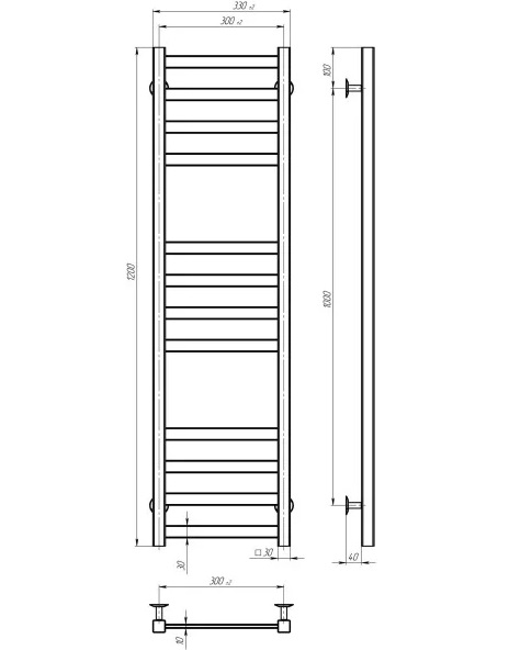 Электрический полотенцесушитель Deffi Avast П12 300х1200 правое подключение JD04 черный B.AV.120.30.12.E.B.R.2