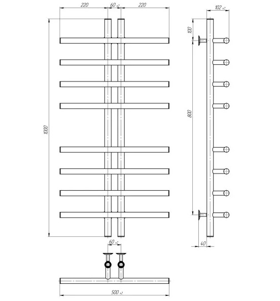 Электрический полотенцесушитель Deffi Gray П8 60х1000 левое подключение JD03 черный A.GY.100.6.8.E.B.L.1