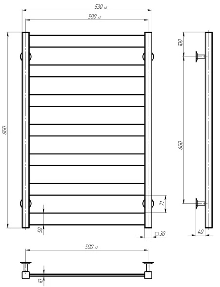 Электрический полотенцесушитель Deffi Harmony П7 500х800 правое подключение JD04 черный B.HR.80.50.7.E.B.R.2