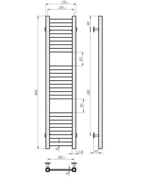 Электрический полотенцесушитель Deffi Magnus П15 200х1000 правое подключение JD04 хром A.MA.100.20.15.E.C.R.2