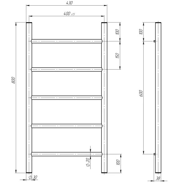Электрический полотенцесушитель Deffi Орион П5 400х800 левое подключение черный C.OR.80.40.5.E.B.L.5