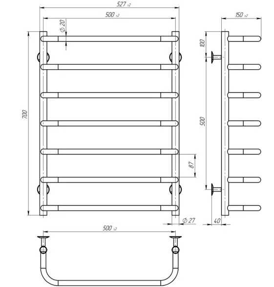 Электрический полотенцесушитель Deffi Стандарт П7 500х700 левое подключение EF16 черный D.SS.70.50.7.E.B.L.5