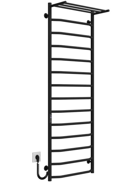 Электрический полотенцесушитель Deffi Трапеция с полкой П15 500х1500 левое подключение JD03 черный C.TP.150.50.15.E.B.L.1
