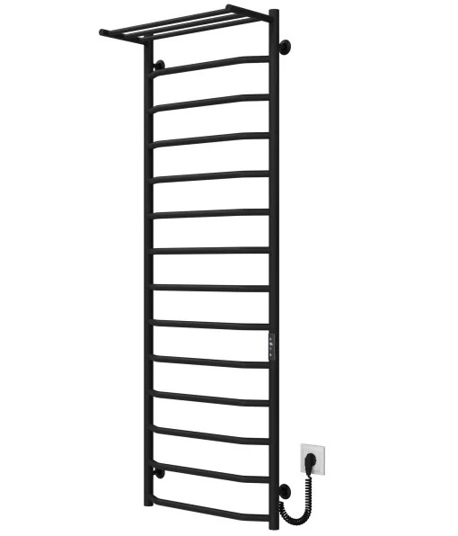 Электрический полотенцесушитель Deffi Трапеция с полкой П15 500х1500 правое подключение JD03 черный C.TP.150.50.15.E.B.R.1