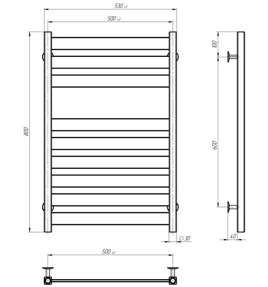 Электрический полотенцесушитель Deffi Victoria П9 500х800 правое подключение JD04 черный A.VI.80.50.9.E.B.R.2