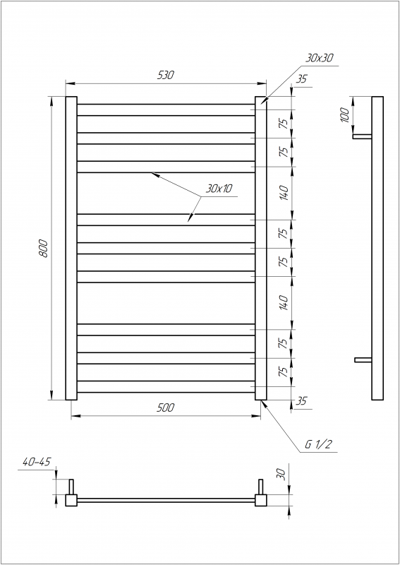 1) Электрический полотенцесушитель Genesis-Aqua Tristar 80x53 см черный