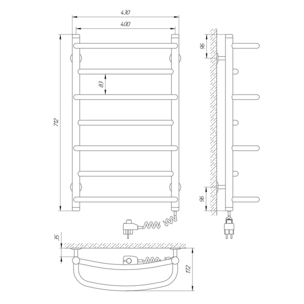 Электрический полотенцесушитель Laris Евромикс П7 Э 400x700 мм правый