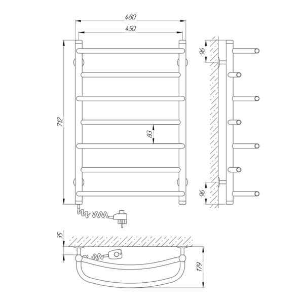Электрический полотенцесушитель Laris Евромикс П7 Э 450х700 мм левый
