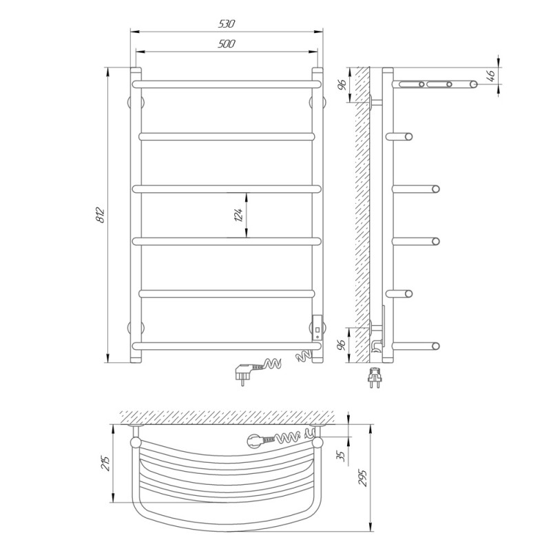 Электрический полотенцесушитель Laris Еврофлеш П6 Э 500x800 мм правый