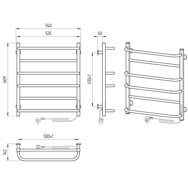 Управляет нагревом полотенцесушителя микропроцессорный термоконтроллер (кнопочное управление). Для начала работы необходимо задать температуру полотенцесушителя. Термодатчик контролирует температуру поверхности полотенцесушителя, что исключает его перегрев. Среди преимуществ регулятора - хранения избранного режима работы (при отключении работа восстановится в запрограммированном пользователем режиме), наличие таймера отключения (3h) и цветовой индикации работы.
