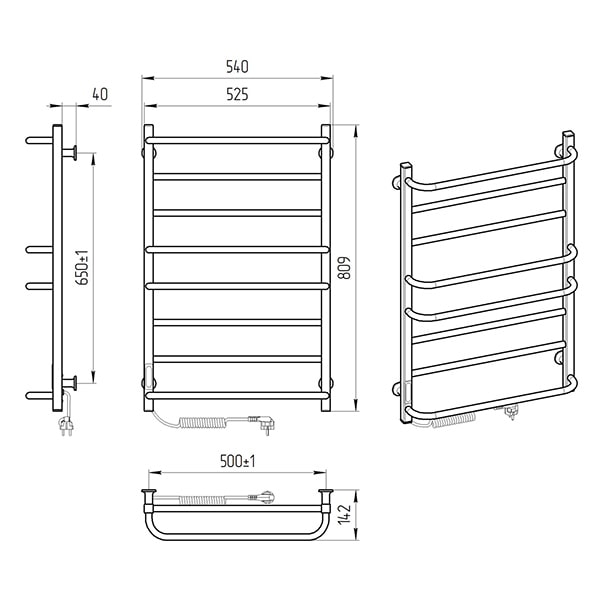 Управляет нагревом полотенцесушителя микропроцессорный термоконтроллер (кнопочное управление). Для начала работы необходимо задать температуру полотенцесушителя. Термодатчик контролирует температуру поверхности полотенцесушителя, что исключает его перегрев. Среди преимуществ регулятора - хранения избранного режима работы (при отключении работа восстановится в запрограммированном пользователем режиме), наличие таймера отключения (3h) и цветовой индикации работы!