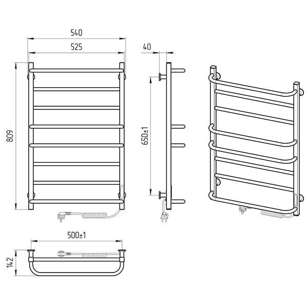 Управляет нагревом полотенцесушителя микропроцессорный термоконтроллер (кнопочное управление). Для начала работы необходимо задать температуру полотенцесушителя. Термодатчик контролирует температуру поверхности полотенцесушителя, что исключает его перегрев. Среди преимуществ регулятора - хранения избранного режима работы (при отключении работа восстановится в запрограммированном пользователем режиме), наличие таймера отключения (3h) и цветовой индикации работы.