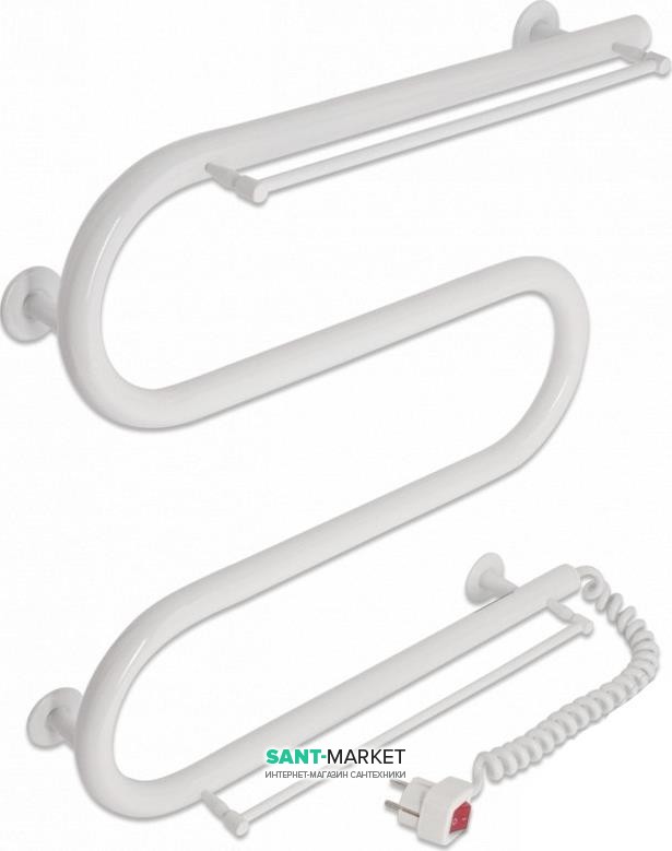 Электрический полотенцесушитель Laris Зебра Змеевик 25 ЧК3 Э 500x500 мм с двумя полками правый