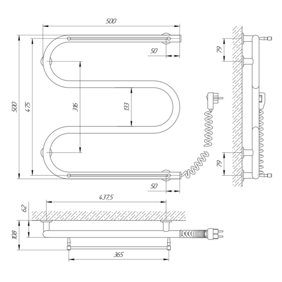 Электрический полотенцесушитель Laris Зебра Змеевик 25 ЧК3 Э 500x500 мм правый 75201038