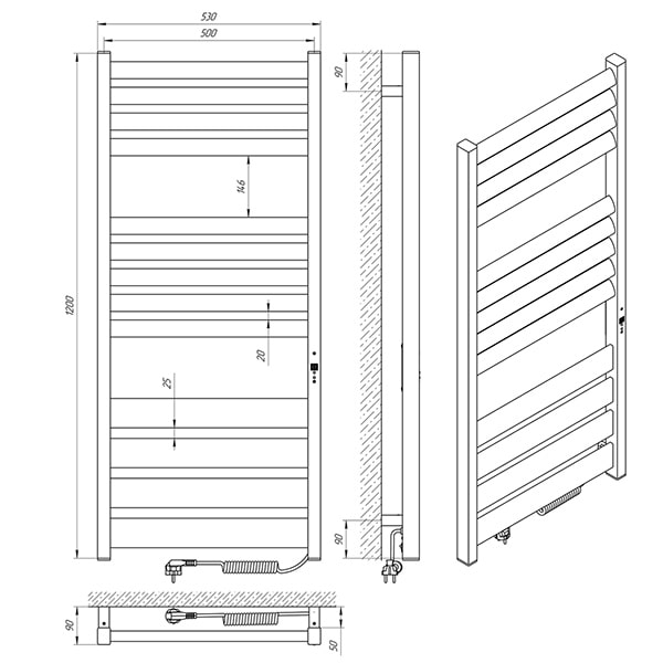Особенности: управляет нагревом электрополотенцесушителя микропроцессорный термоконтроллер. Для начала работы необходимо задать температуру полотенцесушителя. Дополнительно можно включать/выключать нагрев, программно снижать мощность до 50%. Термостат контролирует температуру поверхности полотенцесушителя, что исключает его перегрев. Выдерживает напряжение 1500 В переменного тока/минуту. Есть удобная функция блокировки кнопок от детей.