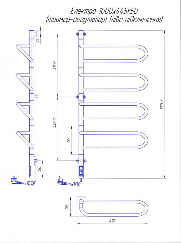 Электрический полотенцесушитель Mario Электра-I TR 1000x445/150 левое подключение 4820111356041