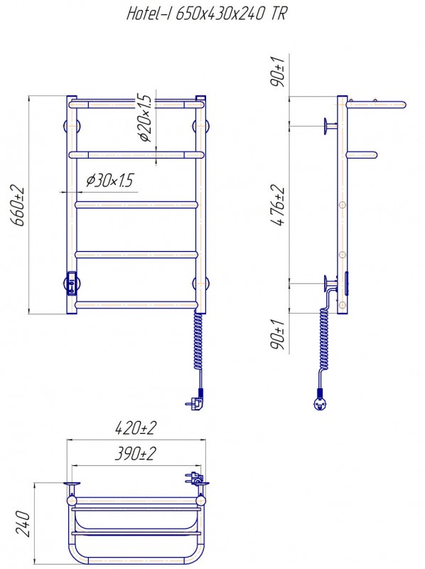 Электрический полотенцесушитель Mario Hotel-I TR 650х430/240 правое подключение