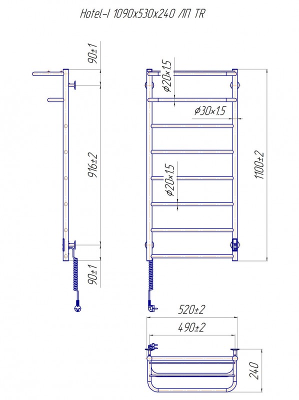 Электрический полотенцесушитель Mario Hotel-I TR 1090х530/240 левое подключение
