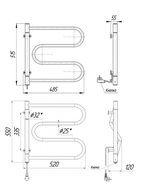 Электрический полотенцесушитель Mario Лассо-I 515x485 4820111353835